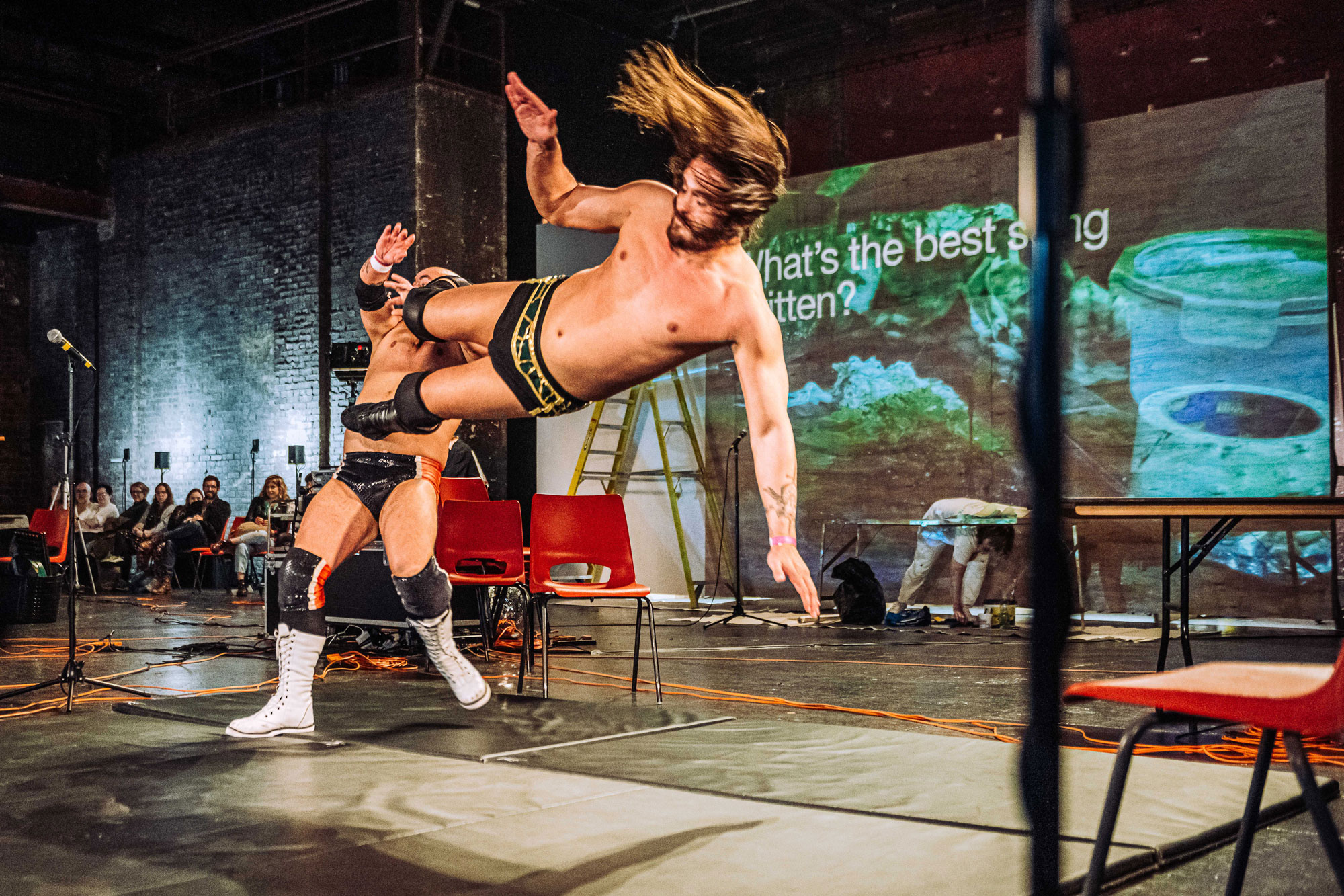 12 Last Songs is a durational meditation on the interconnected nature of work. Over the span of half a day, Quarantine introduces the audience to 30 local laborers, pays them for their time, and provides them with a stage to demonstrate their trade and how they see the world. For their January show, the company and their NYC facilitators at Working Theater had already assembled an astonishing cross-section of New York City workers, including a midwife, an astrophysicist, a doorman, a dog groomer, a subway conductor, a sex worker and, ironically, an immigration lawyer. Our collaboration began back in March of 2025. Since then, we’ve exerted thousands of working hours to make this event a reality.
